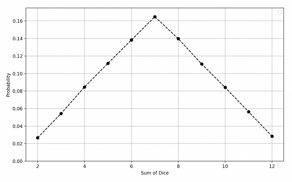 This triangular distribution is fascinating because it reflects how probabilities are distributed when combining the results of two dice. Keep in mind that this knowledge might come in handy in your future adventures, as it will allow you to estimate the chances of success when dealing with situations that require complex dice rolls.