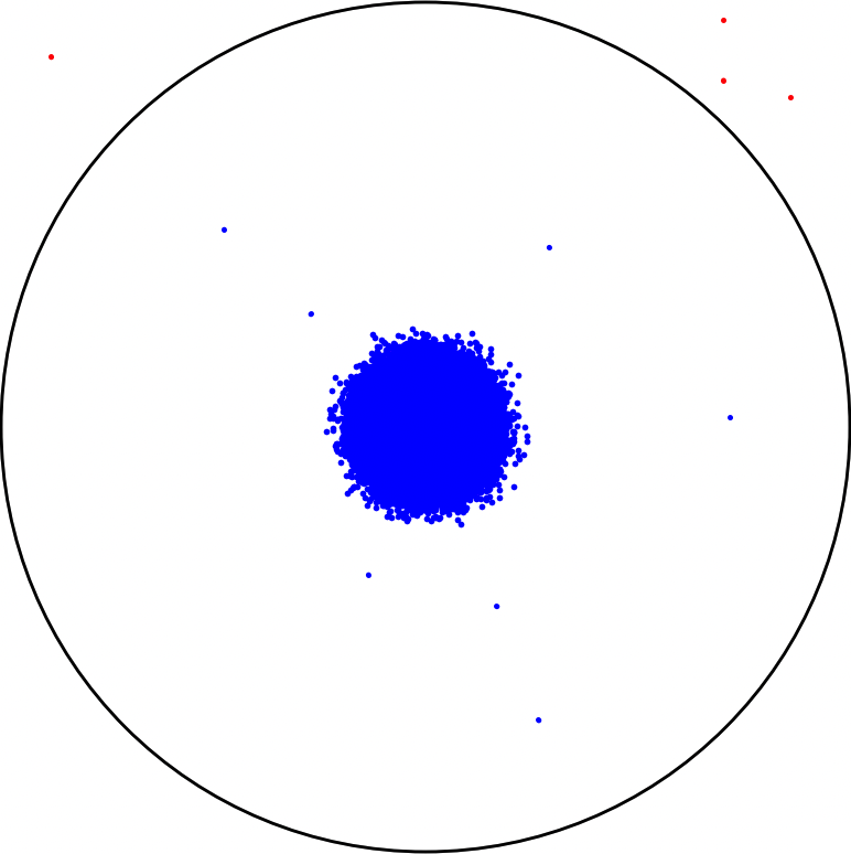 Let me explain this concept by introducing Han Solo, a highly skilled marksman, into the simulation. The distribution of shots fired would no longer be uniformly random, but rather, it would be weighted towards the areas where Han Solo aims. More precisely, if we estimate its precision rate as we did with the stormtroopers, we observe that he shoots almost perfectly well.